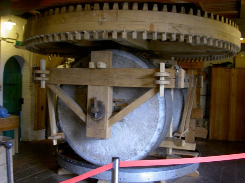Foto van een "klein"detail binnen in de molen. Indrukwekkend wat er zoal van hout gemaakt kan worden, zoals bv tandraderen en assen die ongelooflijke krachten te verwerken hebben. Er is een indrukwekkend vakmanschap aan deze retauratie te pas gekomen,dat is duidelijk.