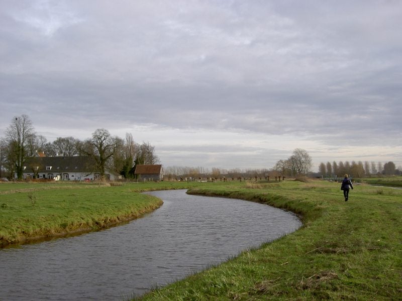 HET AANVOERKANAAL MET DE BOERDERIJ VAN HUIZE ZWANENBURG LINKS>