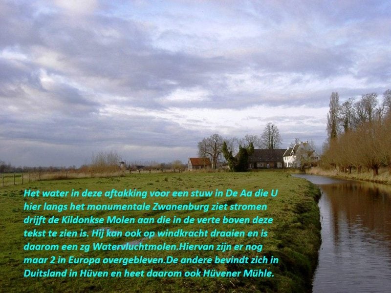 Dit is het huis Zwanenenburg in de buurt van de Kildonkse Molen.Tijdens de wandelingen die er georganiseerd worden vanuit de molen komt U langs dit huis.U moet hierbij ook het wateraanvoerkanaal voor de molen oversteken en dat gebeeurt met een zg trekpontje waarvan ik ook een foto plaats.