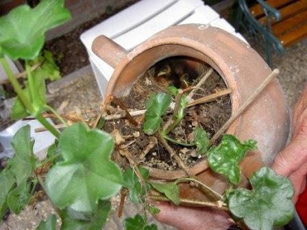 Sterke staaltjes van nestbouw bij vogels leveren de Weversoorten.Maar daar moet je wel voor op reis om dat te zien.Hierboven enkele fotoos ervan.Beneden op de foto ,in de bloempot, heeft een roodborst een nest gebouwd.Bovenin zie je 2 snaveltjes van de jonge vogels.